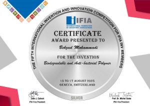 این رویداد معتبر بینالمللی از تاریخ ۱۵ تا ۱۷ اوت ۲۰۲۵ در ژنو، سوئیس برگزار گردید. در این رقابتها، آقای دکتر بهزاد محمدی، معاون آموزش و پژوهش مرکز، با ارائهٔ اختراع نوآورانه خود با عنوان «پلاستیک زیستتخریبپذیر و ضد باکتری» موفق شد در میان رقبای برجستهٔ جهانی، مدال نقره را کسب نماید.